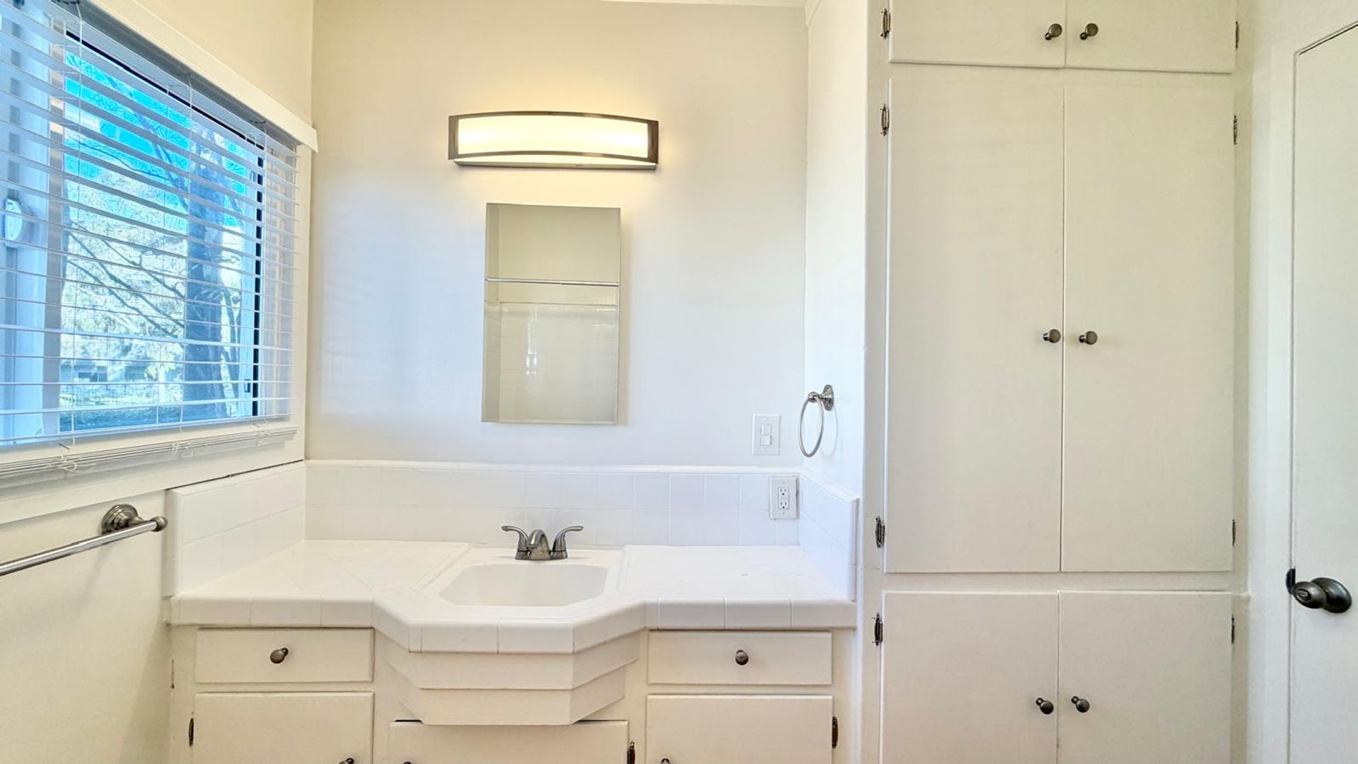 – White vinyl windows with blinds