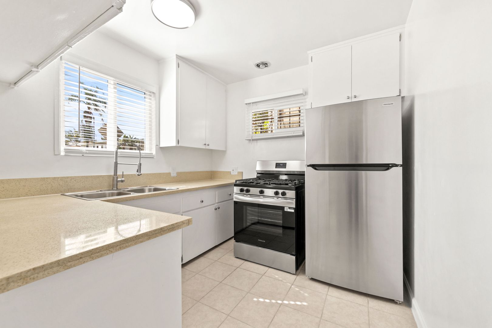 – New stainless steel appliances — gas range/oven and refrigerator