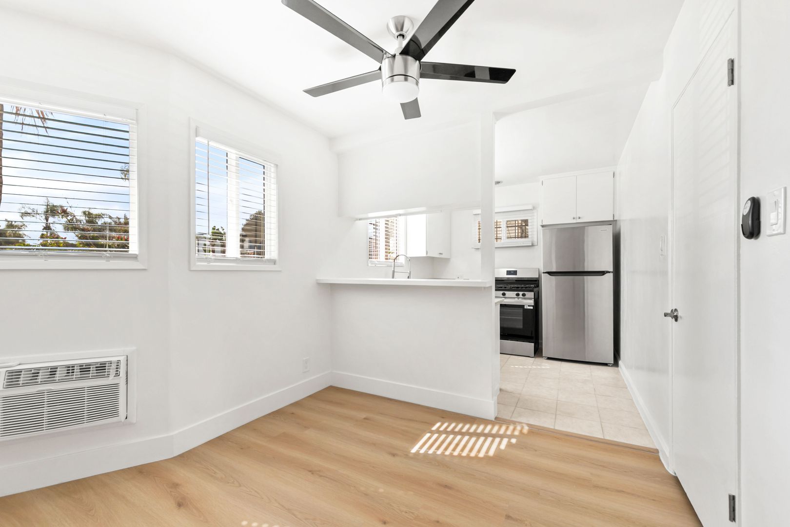 – Two wall A/C units — bedroom and living/dining room