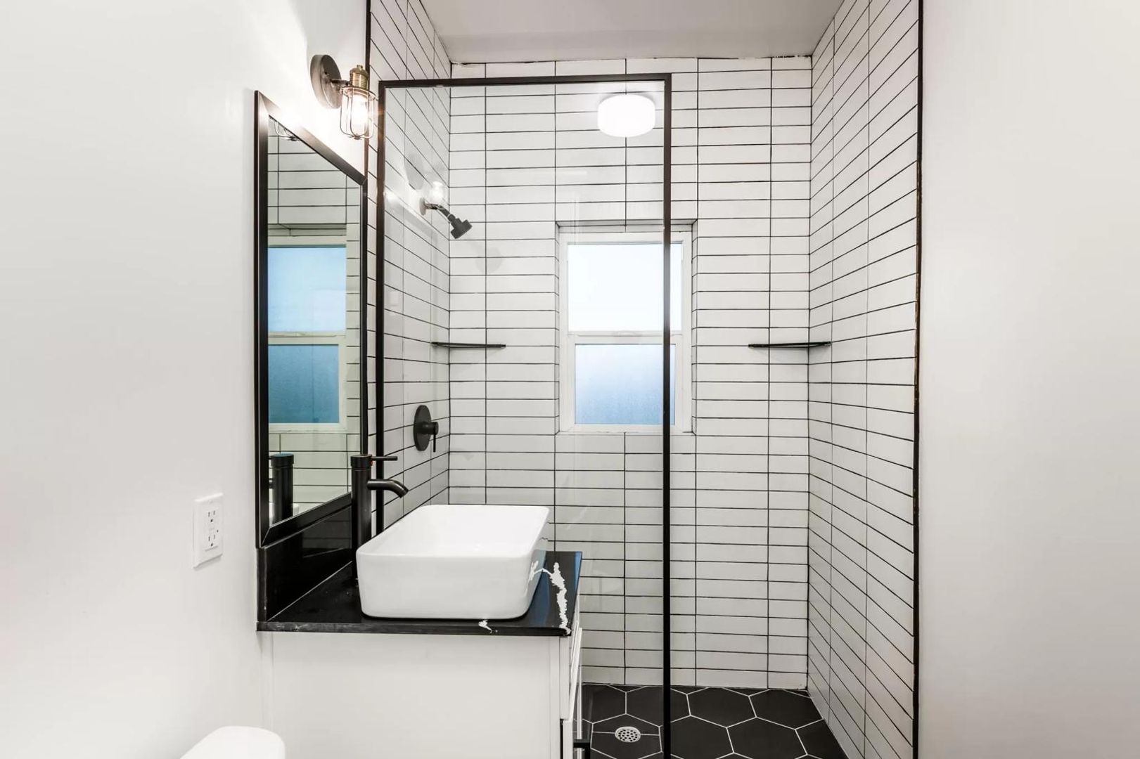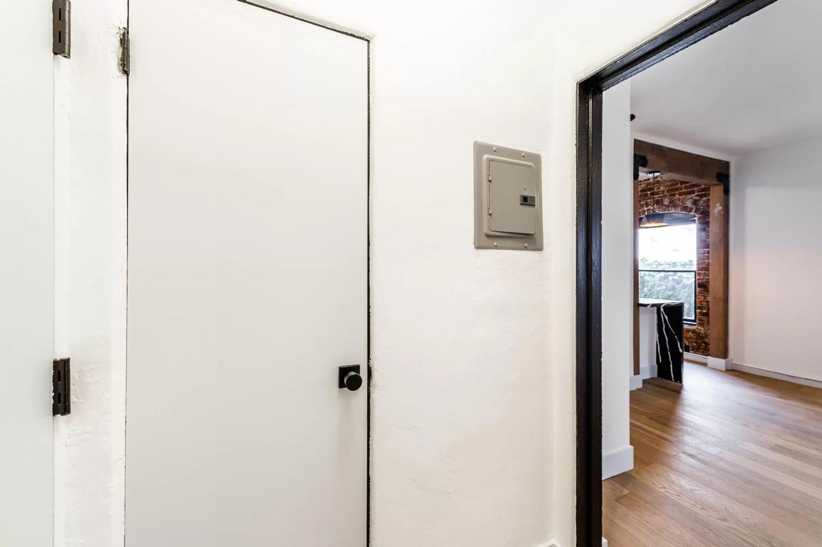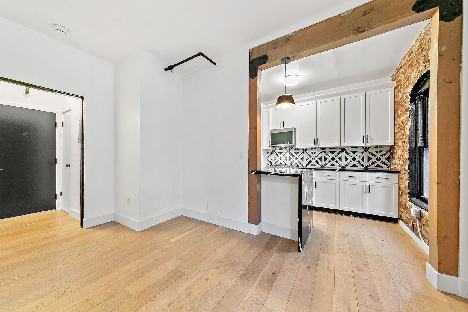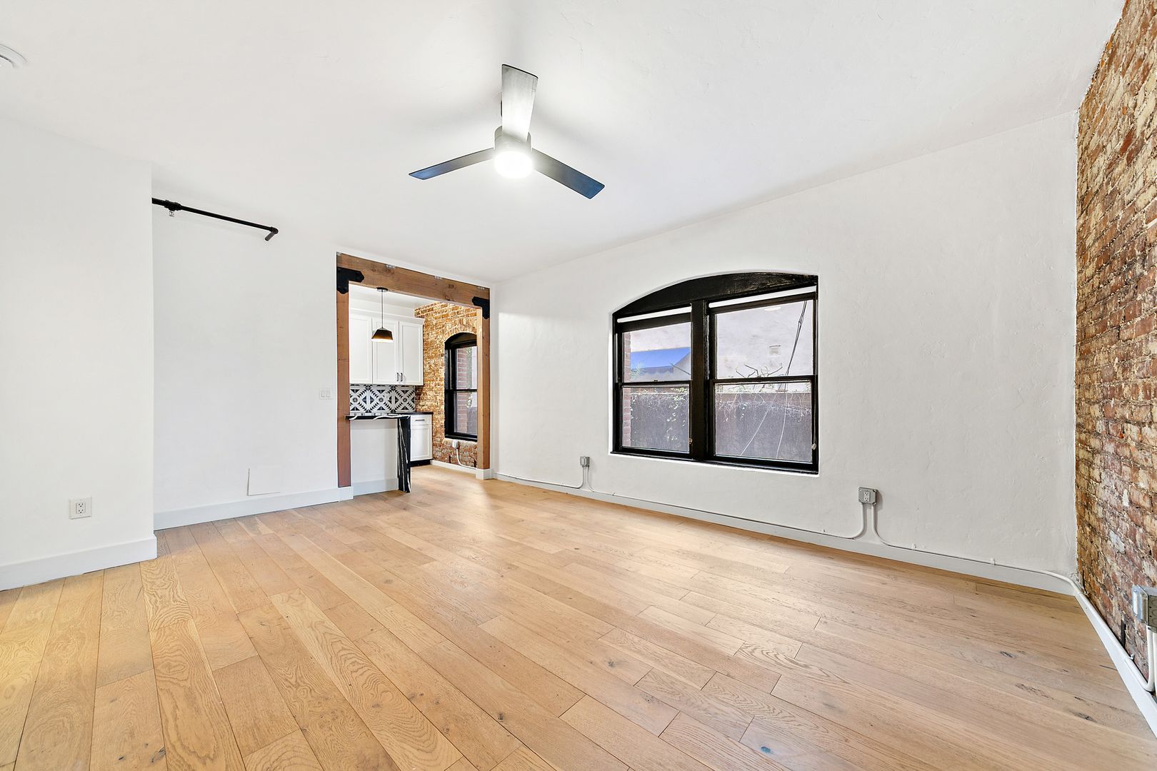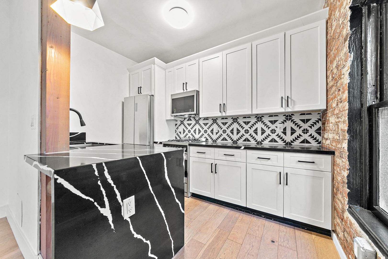 – Bright corner unit with exposed original brick accent wall for character and warmth